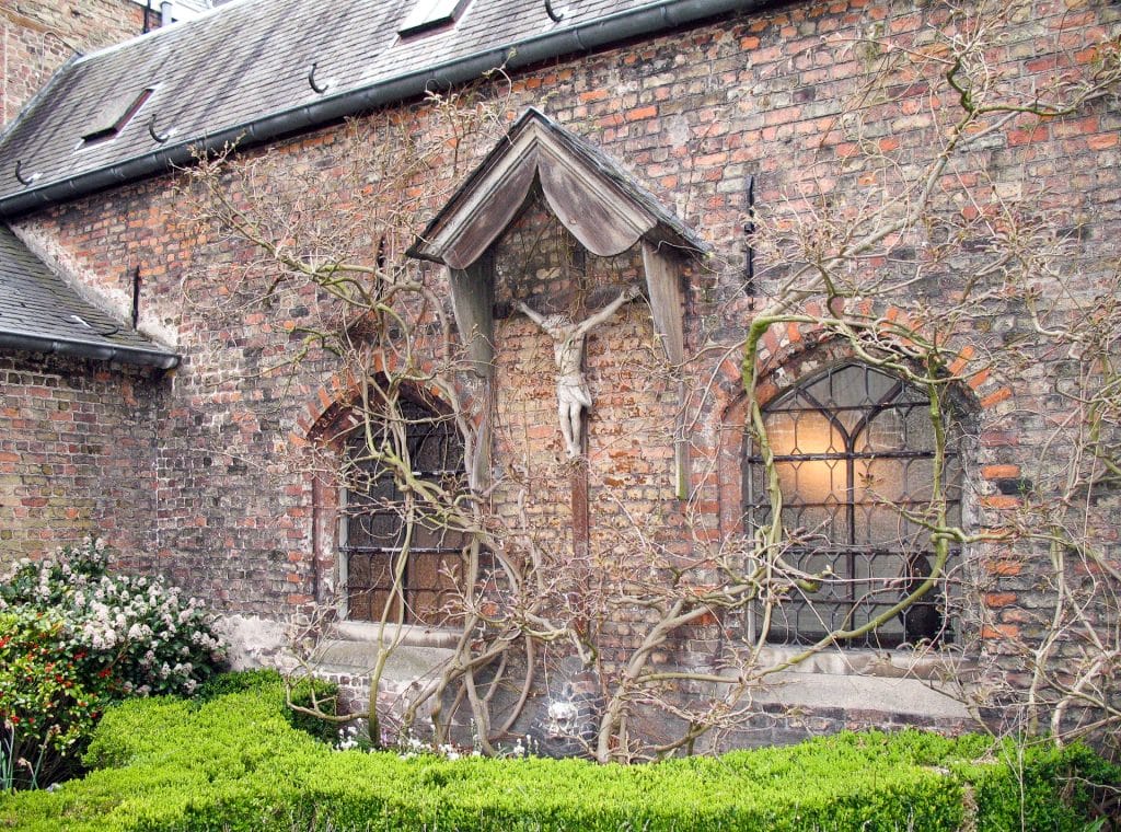 We starten aan het station van Brugge (kant Centrum). Je wandelt langs de vesten, voorbij de allereerste drinkwatervoorziening van de stad. Je passeert de Smedenpoort en wandelt tot aan de Bloepit. Je bezoekt kort de Onze-Lieve-Vrouw-van-Blindekenskapel (14de – 15de – 17de eeuw) met een boeiend verhaal! Daarna bezoek je met een gids de Godelieveabdij.