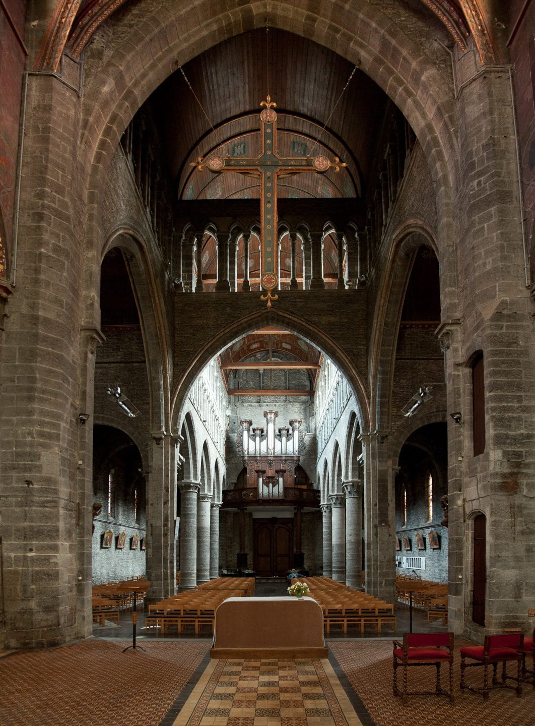 Met de trein spoor je naar het station van Doornik. Van daar is het 15′ (1,2 km) stappen tot aan de Sint-Jakobskerk.