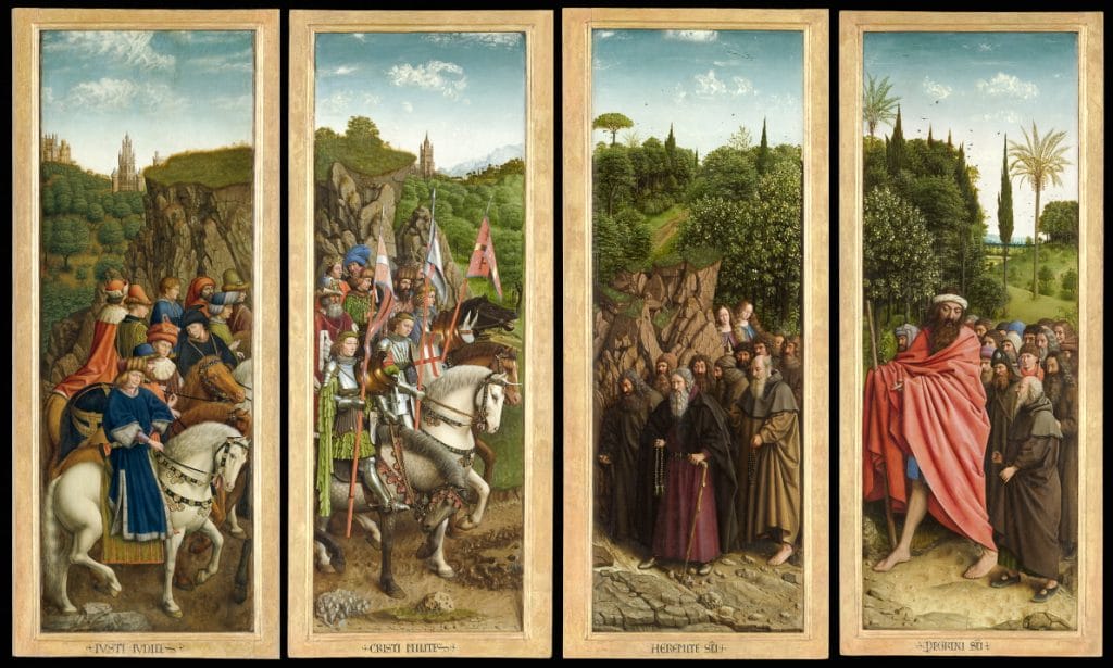 Afdeling Gent is te gast bij afdeling Zenne-Dender met het documentaire filmproject ‘Wie ben jij: rechter, ridder, pelgrim van het Lam Gods’. Deze film beschrijft de interactie tussen de zogenaamde ‘aardse’ panelen van het Lam Gods (1432) van de gebroeders Van Eyck. Ludo Collin – rector van de Sint-Baafskathedraal – opent met enkele interessante inzichten m.b.t. de panelen van het Lam Gods. Willem De Pauw – raadsheer bij het Hof van Beroep in Gent – legt historische verbanden tussen pelgrimeren en rechtspraak en Peter Broos – ridder in de Orde van het Heilig Graf van Jeruzalem – plaatst het ridderschap in historisch én hedendaags perspectief.
