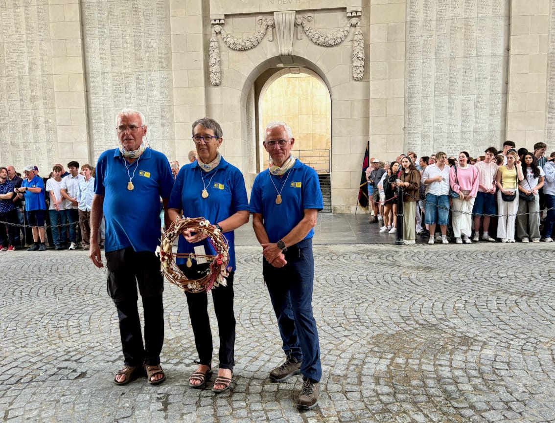 Huldiging aan de Menenpoort in Ieper door het Vlaams Compostelagenootschap
