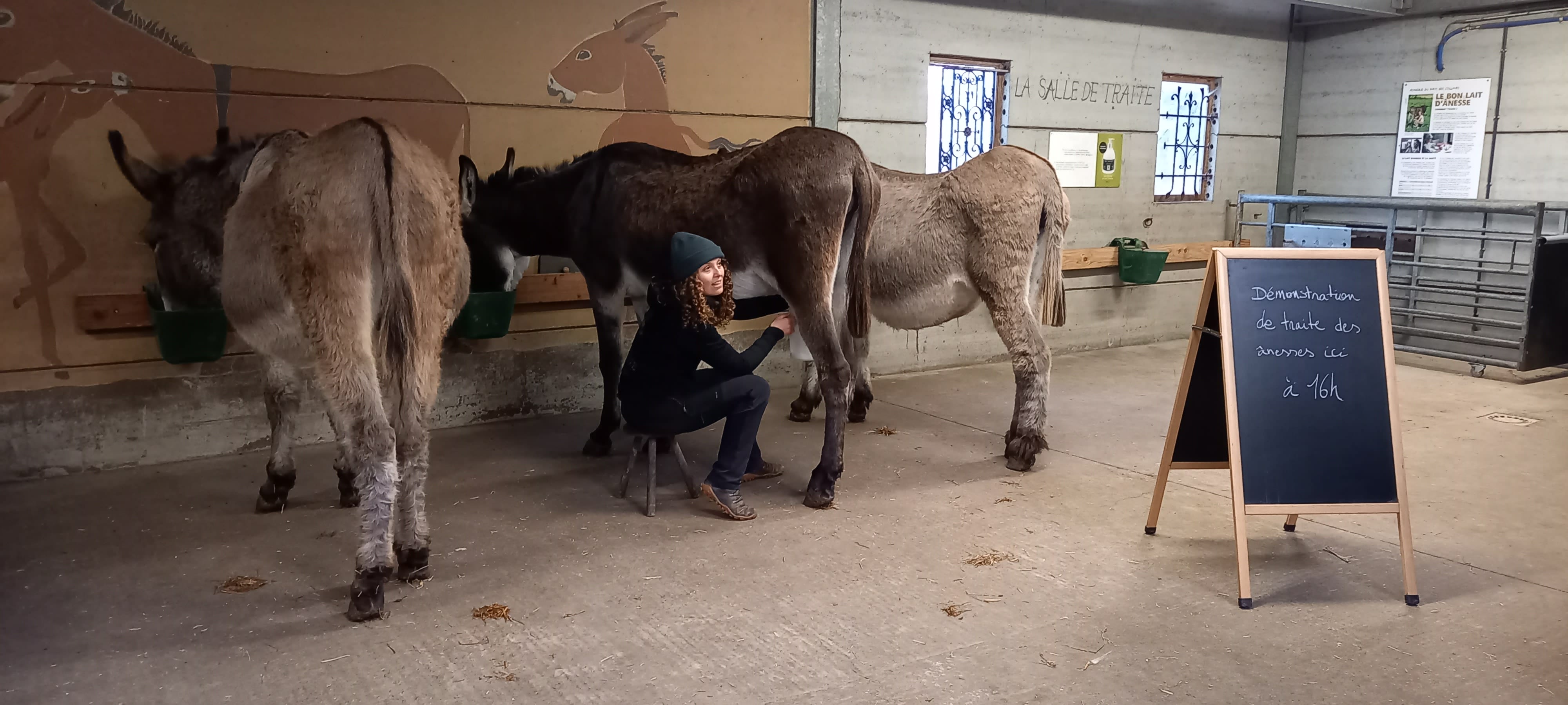 - 14 u.: wandeling naar de grootste ezelmelkerij van België (ongeveer 2 km). Daar brengen we een vrij bezoek, ondersteund door een woordje toelichting. We zien er hoe de ezelinnen worden gemolken. Er is een kleine shop waar de zepen, shampoos en verzorgingsproducten (op basis van ezelinnenmelk) beschikbaar zijn.
