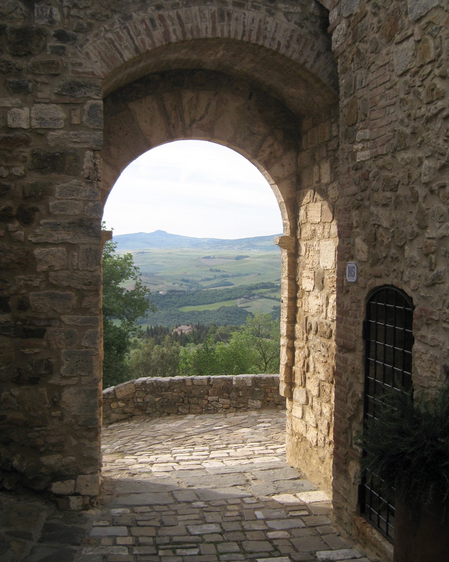 Over het landschap in Toscane hoef ik niet lyrisch te doen. Iedereen kan zich wel iets voorstellen bij het zacht golvende landschap met de eeuwig groene cipressen. Boven op de heuvel liggen pittoreske dorpen of stadjes. Toch kan het glooiende landschap behoorlijk pittig zijn. Voor veel van de dagtochten geldt overigens dat er nergens proviand te kopen valt. Voldoende eten meenemen is de boodschap. Drank hoeft niet, want fonteintjes met drinkbaar water zijn her en der te vinden.