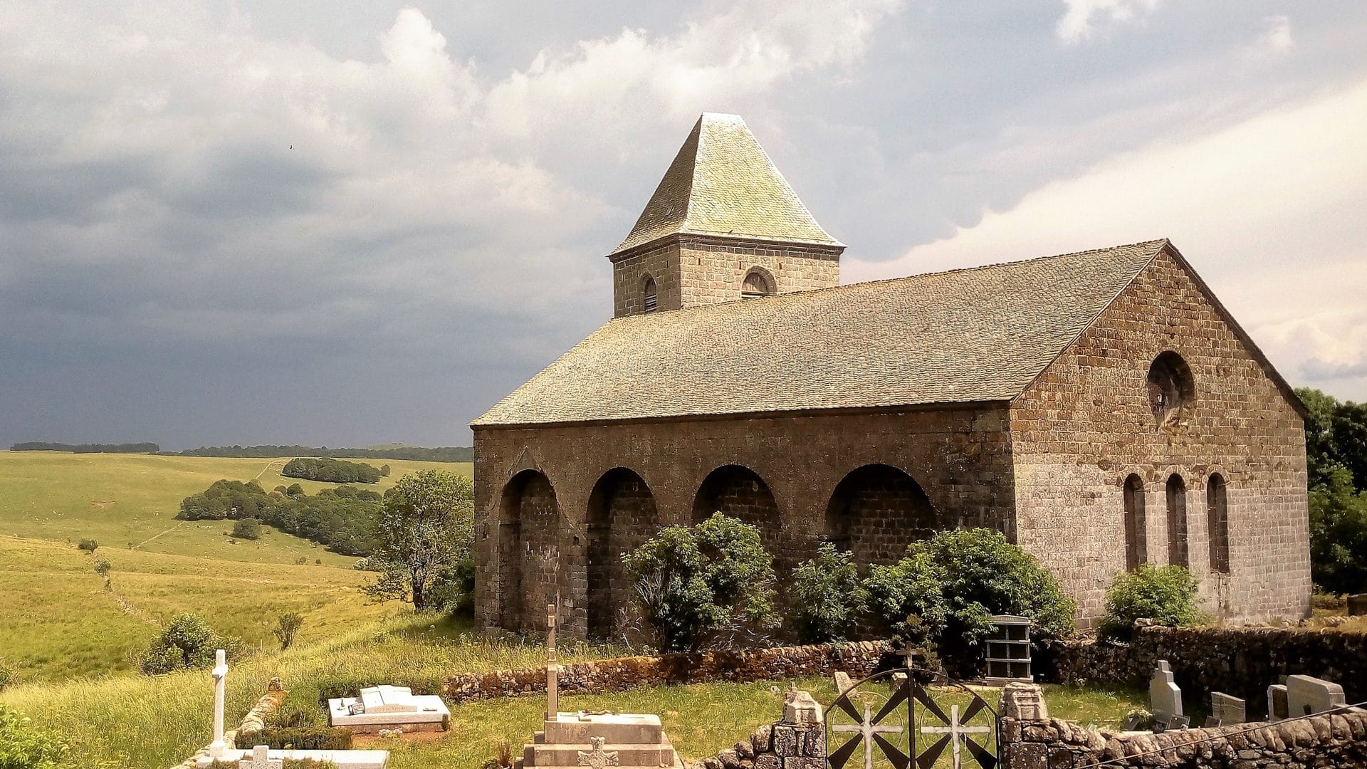 De wind is ondertussen een stuk strakker mijn fluohesje wappert als een vlag op mijn rug maar ik haal de top van de Col d’Aubrac (1340 m), bezoek daar de Dômerie d’Aubrac, het restant van een vroeger klooster dat rond 1120 gesticht werd door Adelard, burggraaf van Vlaanderen. (Het pelgrimskoor van het Genootschap heeft hieraan zijn naam ontleend).