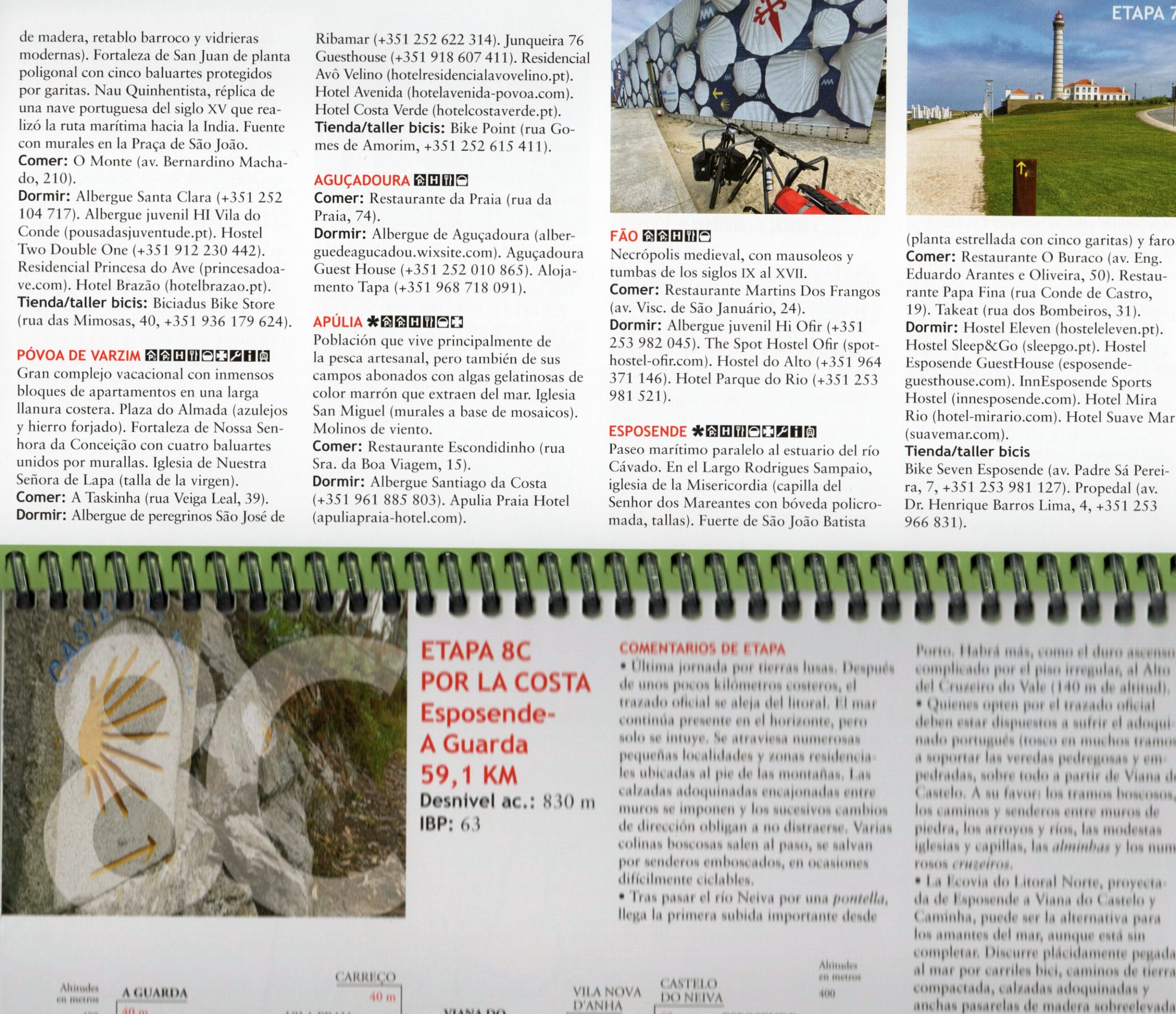 De gids verdeelt deze camino in 11 etappes. Hij start aan de kathedraal Sé in Lisabon en gaat verder langs Tomar, Coimbra en Porto. Voorbij Porto heb je de keuze tussen de Camino central (interior) en de camino da costa.