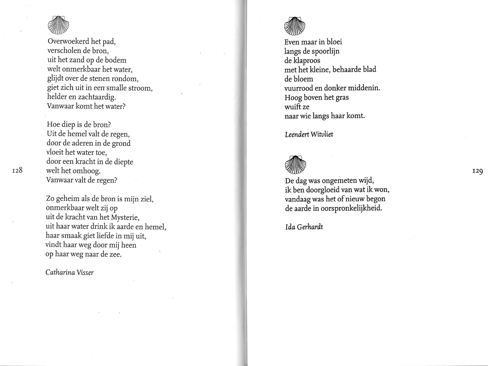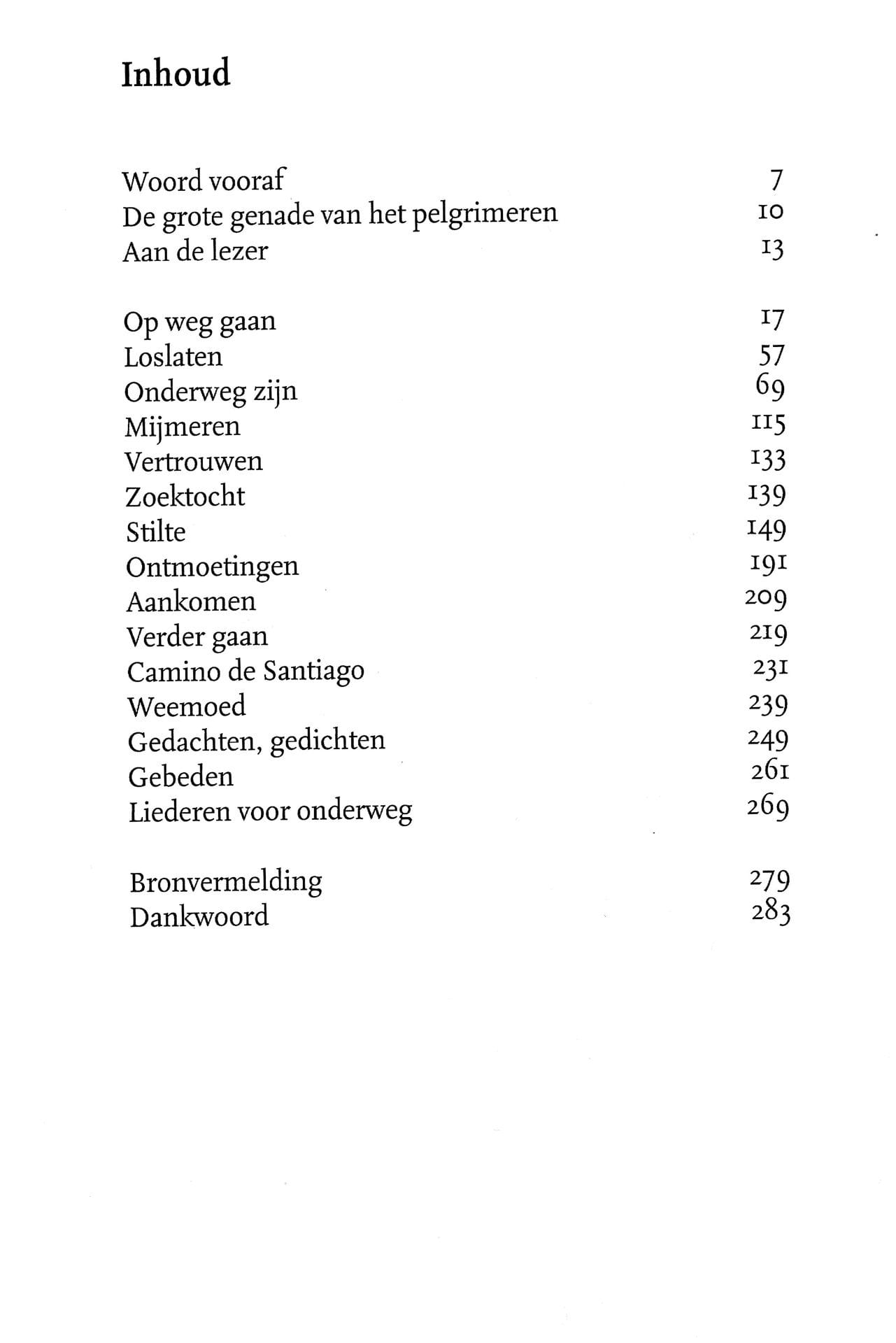 In dit boek bundelt de auteur spreuken, gedachten en gedichten. Soms zijn ze lichtvoetig, soms hebben ze een enigszins zwaardere tred. Zij zijn te beschouwen als geestelijk voer voor thuis en voor onderweg. Ze zijn bedoeld om over na te denken, om de pelgrim te inspireren en hem zo behulpzaam te zijn bij het realiseren van zijn eigen weg. Ook na de tocht is dit boekje een hulp bij de reflectie over de opgedane emoties en ervaringen.