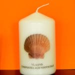 Kleine kaars met logo, in plastieken hoes. Hoogte: 6,50 cm.