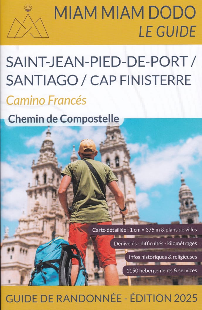 De gidsen uit de reeks Miam Miam Dodo danken hun bekendheid aan het feit dat ze zulke gedetailleerde en correcte informatie bundelen van de voorzieningen onderweg. Bij elk gehucht, dorp of stad vind je alle nodige informatie over overnachtingsmogelijkheden, bakkers, andere winkels, eetgelegenheden, banken, uren van kerkdiensten … Waar het past lees je historische en culturele informatie. Deze gids toont de Camino Francés van Saint-Jean-Pied-de-Port tot Santiago de Compostela, en nog even verder tot Finisterra. De variante langs Muxia staat niet in deze gids. Enkele korte varianten worden wel weergegeven.
