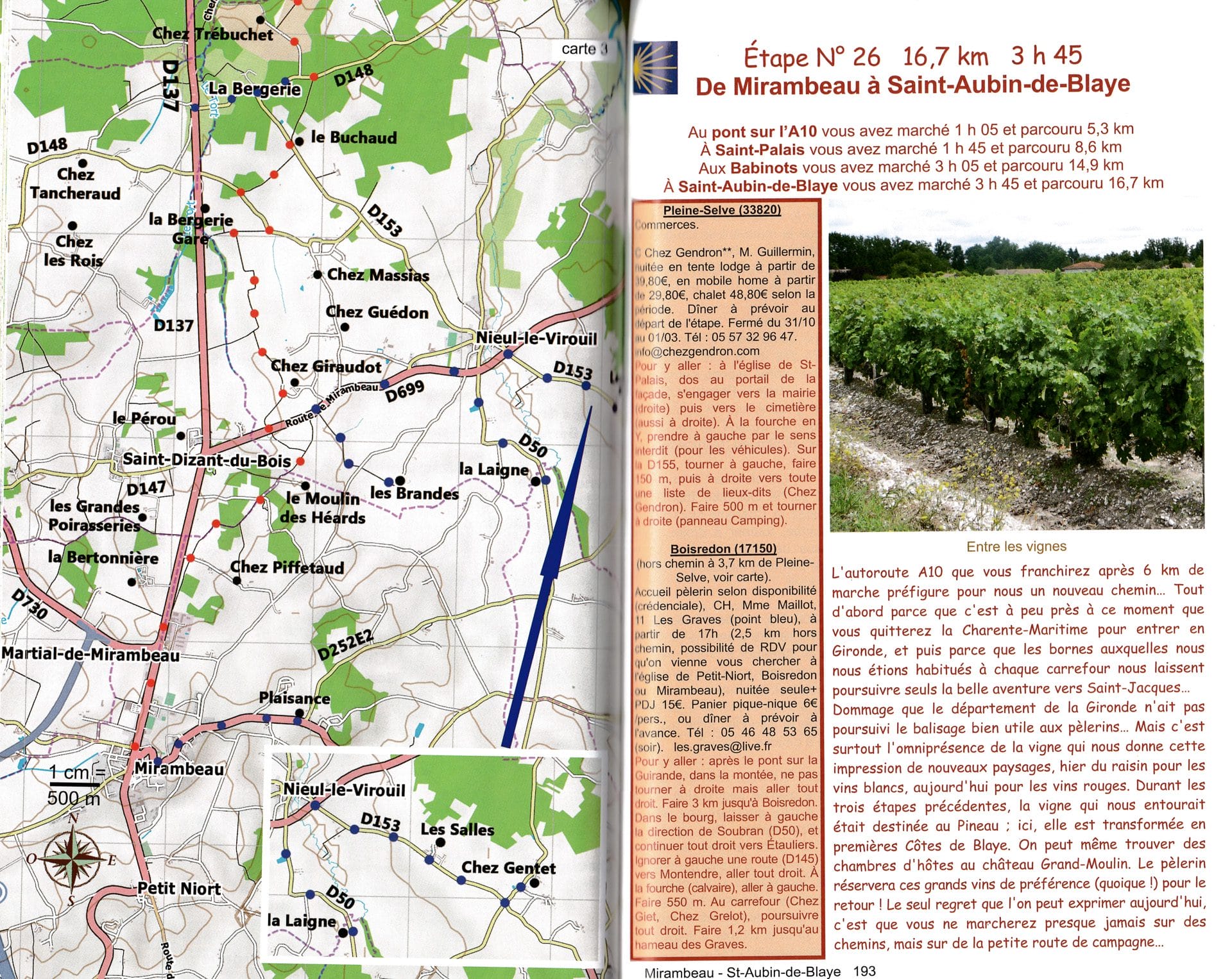 De gids beschrijft in 39 dagtochten de pelgrimsroute Via Turonensis, die vertrekt aan de Tour Saint-Jacques in Parijs en eindigt op de brug over de Nive in Saint-Jean-Pied-de-Port. De totale afstand bedraagt 945 km. Op deze pelgrimsroute doe je volgende grote steden aan: Orléans, Tours, Poitiers, Saintes, Blaye, Bordeaux en Dax. De gids somt van de dorpen onderweg de overnachtingsmogelijkheden, de winkels en de restaurants op. Waar mogelijk worden de dagen en uren van de misviering(en) vermeld. Daarnaast vind je bij elke etappe heel wat informatie over de bezienswaardigheden onderweg.